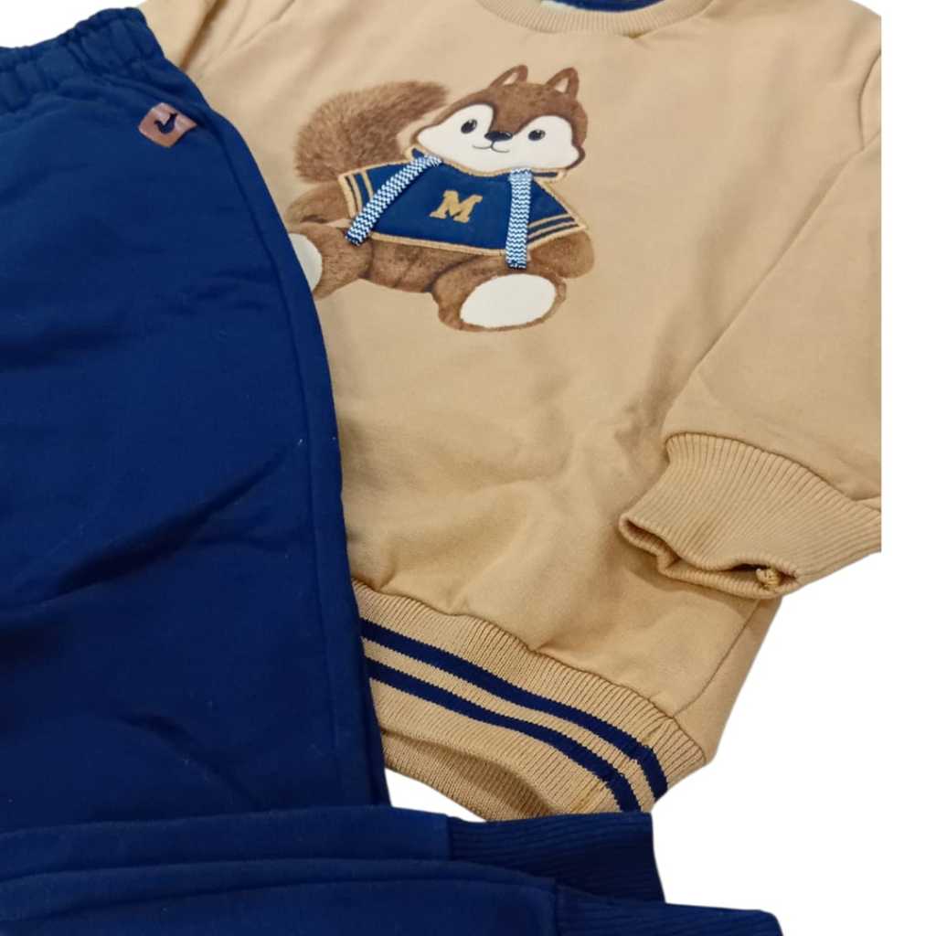 CONJUNTO INFANTIL DA MARCA MILON COMPOSTO POR UMA CASACO EM MOLETOM FLANELADO ,COM PUNHOS NAS MANGAS E BARRA E ESTAMPA DE UM ESQUILO , A CALÇA EM MOLETOM FLANELADO COM BOLSOS E UM EMBLEMA DO ESQUILO , PUNHOS NA BARRA E UM CONFORTÁVEL ELÁSTICO NA CINTURA.PRODUTO ORIGINAL FABRICADO NO BRASIL .