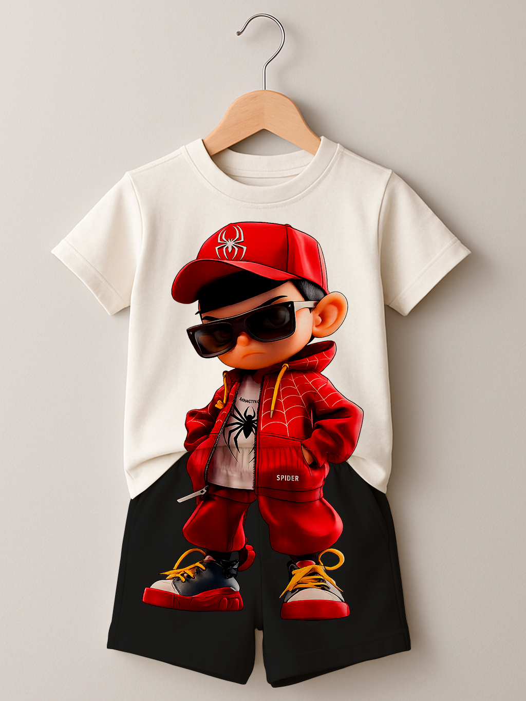 Conjunto Menor Marrento Spider Estiloso Camiseta Bermuda Infantil Juvenil Estampado 100% Algodão
