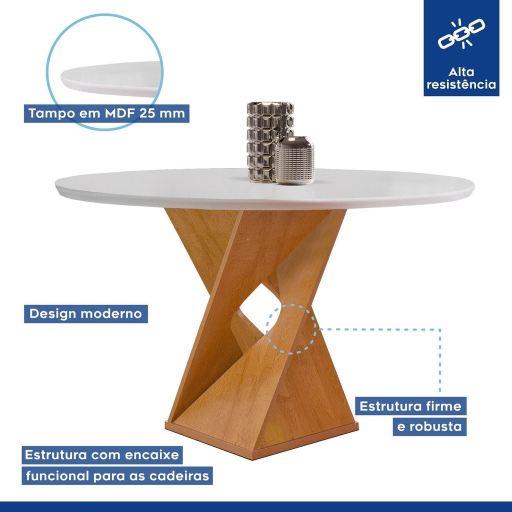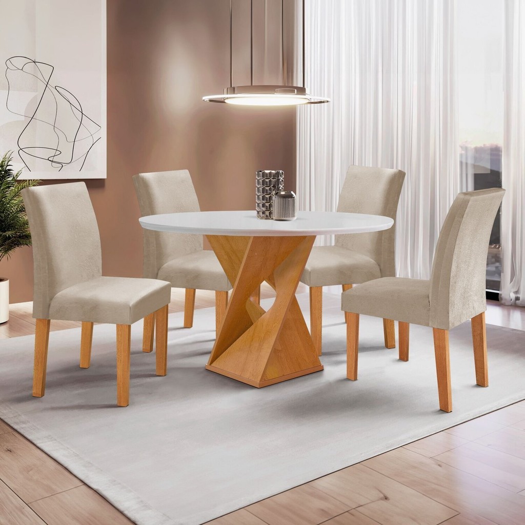 Conjunto Mesa Barcelona 100cmx100cm 4 Cadeiras Espanha Tampo Slim Plus Redondo Yescasa Cinamomo/Off White/Veludo Bege