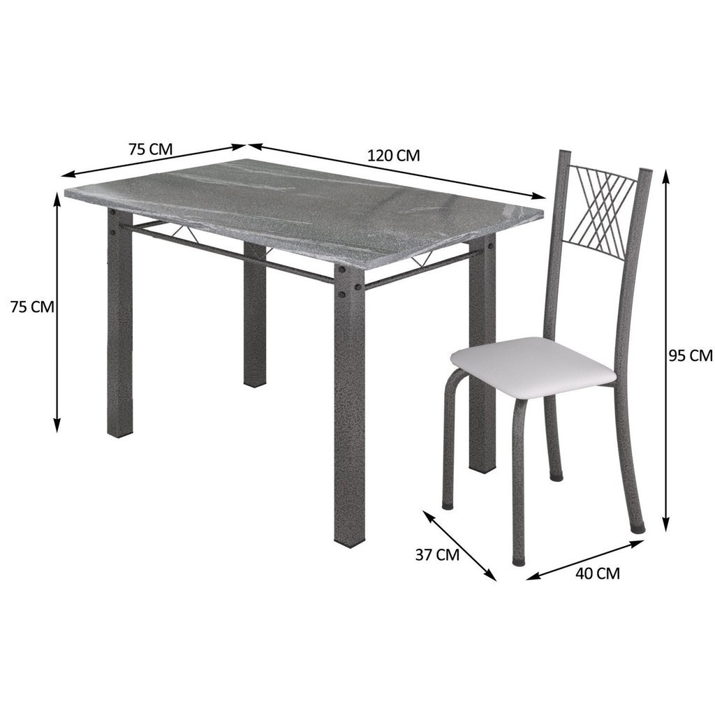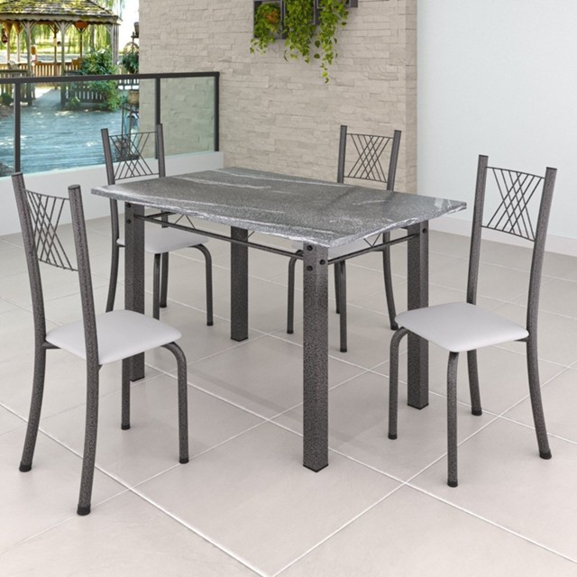 Conjunto Mesa com 4 Cadeiras Tampo de Granito Topázio Sara Yescasa Branco/Prata