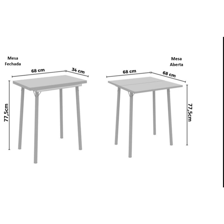 Conjunto Mesa Dobrável Cozinha Sala Jantar + 2 Banquinhos