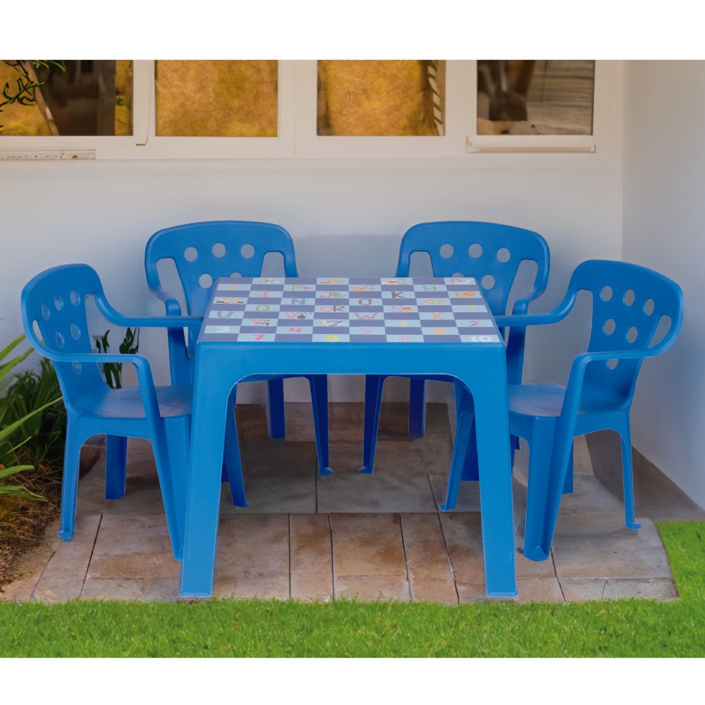 Conjunto Mesa Estampada E 4 Cadeiras Infantil Mor Plástica Azul