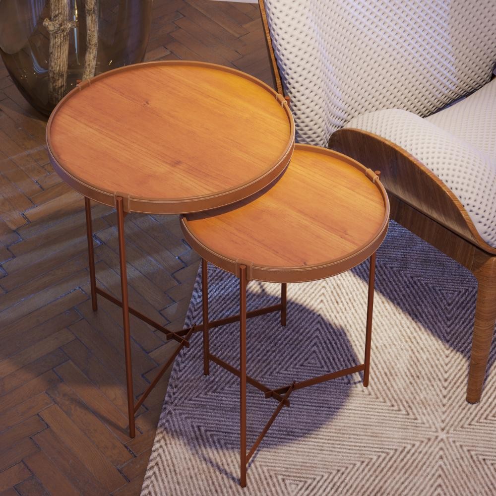 Conjunto Mesa Lateral Aqua Imcal Nature Cobre Redonda Sala