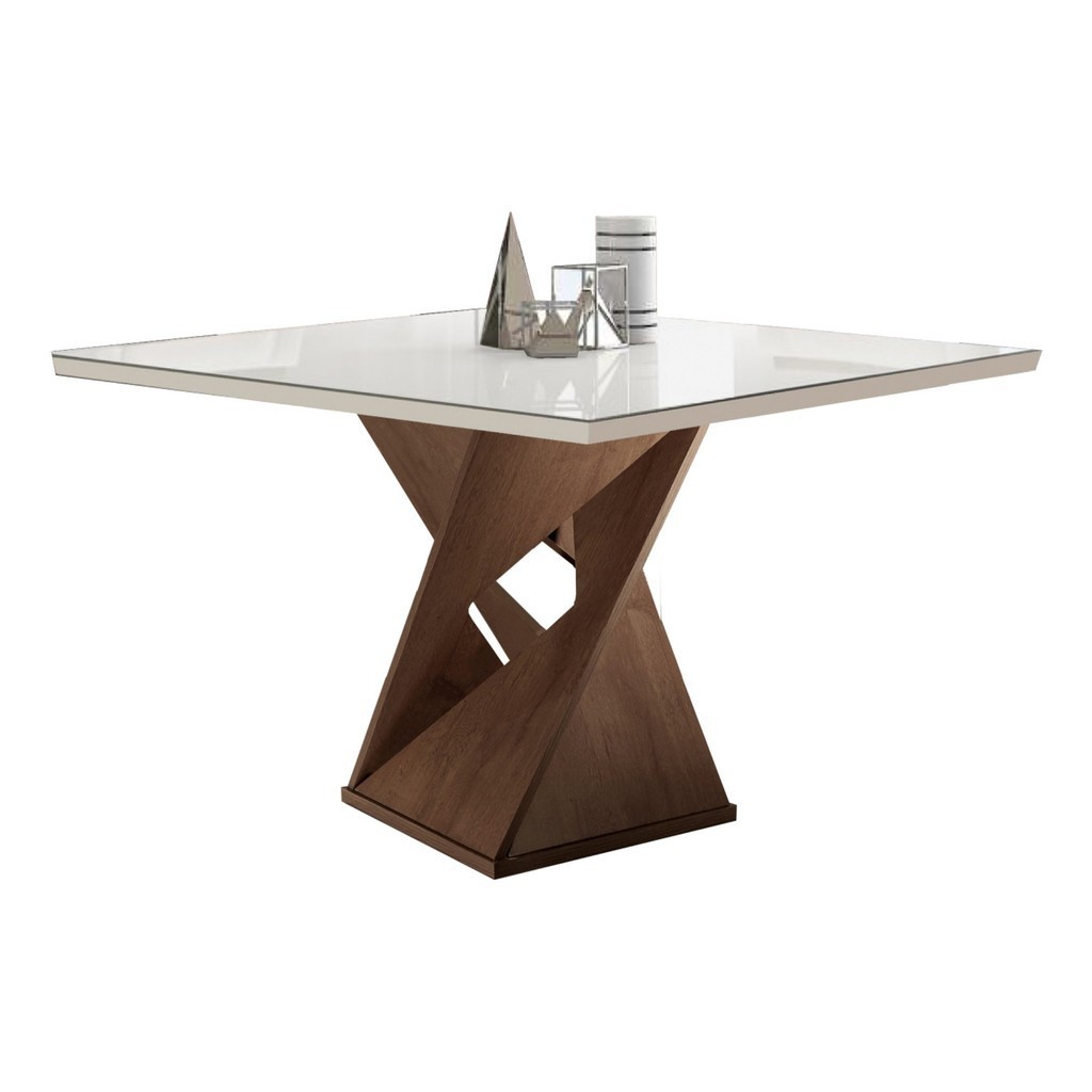 Conjunto Mesa Quadrada com Vidro e 4 Cadeiras 100cmx100cm Barcelona Yescasa Chocolate/Off White/Suede Pena