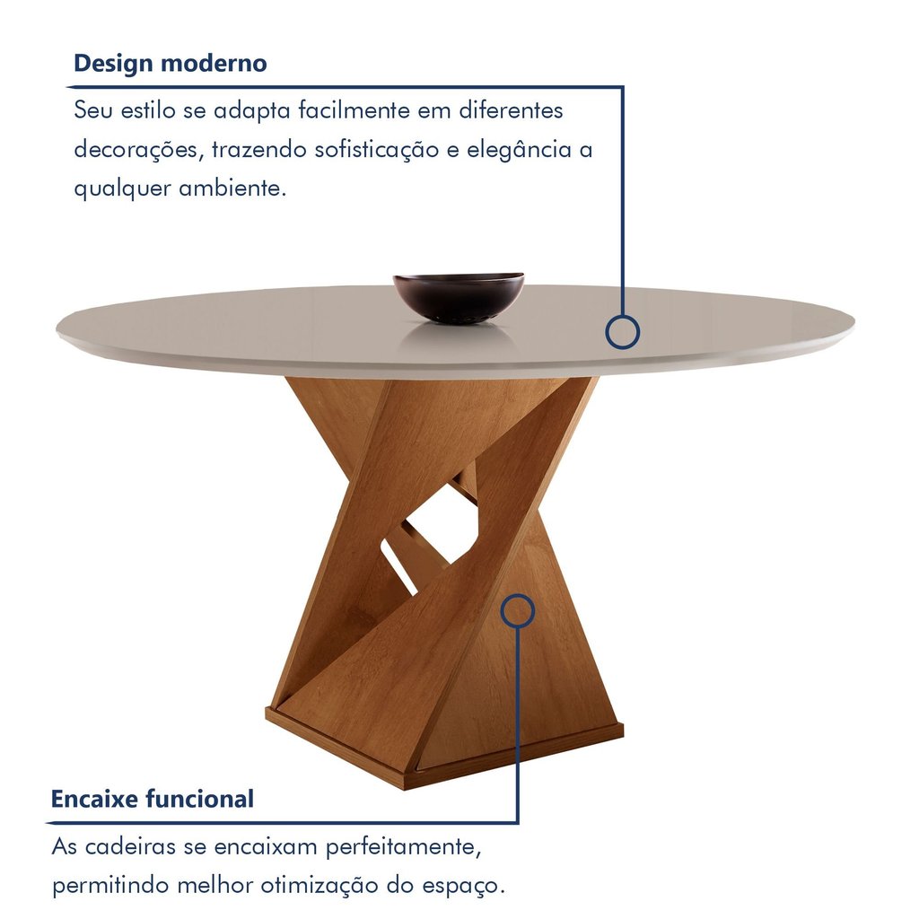 Conjunto Mesa Redonda com 4 Cadeiras Tampo MDF Barcelona Yescasa Cinamomo/Off White/Suede Animale