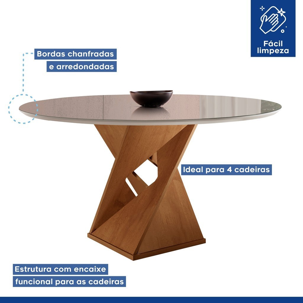 Conjunto Mesa Redonda com Vidro e 4 Cadeiras Tampo Barcelona Yescasa Cinamomo/Off White/Suede Animale