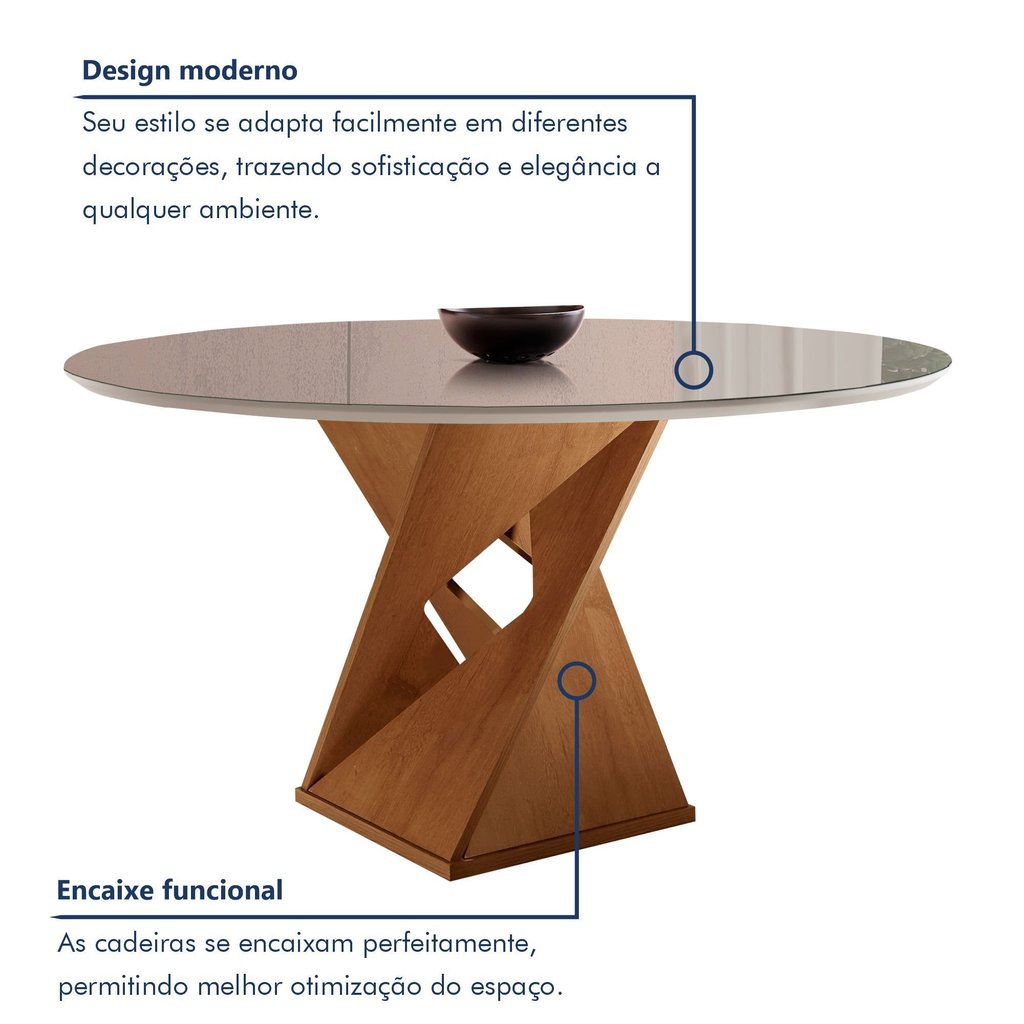 Conjunto Mesa Redonda com Vidro e 4 Cadeiras Tampo Barcelona Yescasa Cinamomo/Off White/Suede Pena