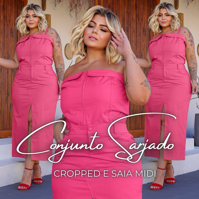 conjunto mídi de sarja plus size fashion grande moda feminina pronta entrega