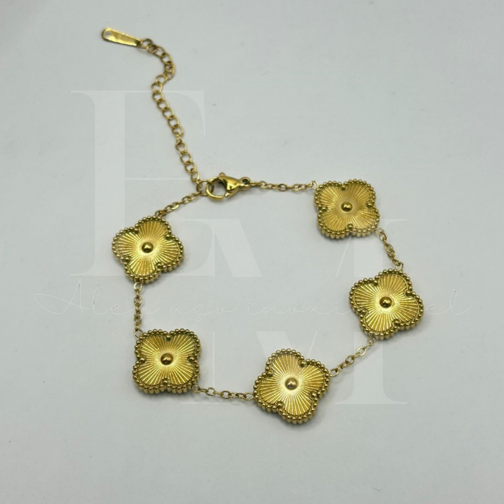 Conjunto Moda FemininoTrevo Dourado /Prata Aço Inoxidavel
