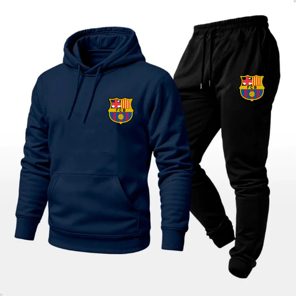 Conjunto Moletom Barcelona Time Europeu Frio Algodão Flanelado Blusão com Capuz