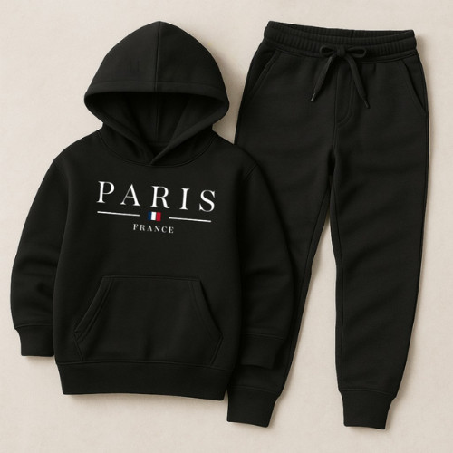 Conjunto Moletom Canguru Infantil Paris Blusa de Frio Calça Masculino Flanelado