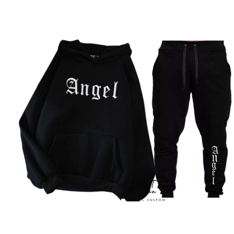 Conjunto Moletom Feminino Angel Blusa De Frio Canguru + calça Moletom Estampado unissex Angel Anjos Tumbrl Com Bolso