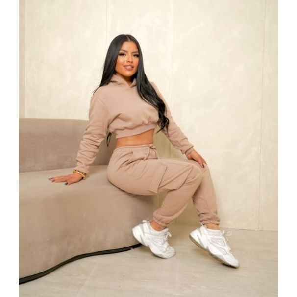 Conjunto Moletom Feminino Cropped/capuz + Calça com Bolso Moda Top Estilos