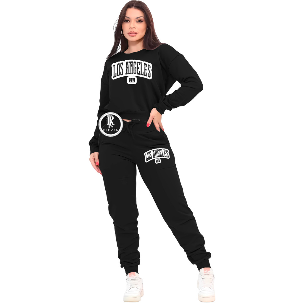 Conjunto Moletom Feminino Los Angeles Califórnia Gola Careca Blusa De Frio Blusa + Calça Moletom Diversas Cores