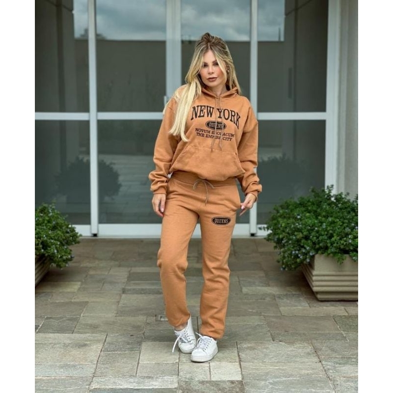 conjunto moletom new York tecido franelado cabo 2 . P veste do 34 ao 36 M veste do 38 ao 40 G veste 42 tecido não tem elasticidade por ser moletom ele é super confortável quentinho tem cordão ajustável na calça. Tem punho nos pés a cinturas e braços Não pega bolinha no tecido por ser moletom original .. Tem touca com cordão ajustável.. entregamos aos Correios em até 1 dia útil ❤ qualquer dúvida pode chamar no direct😊