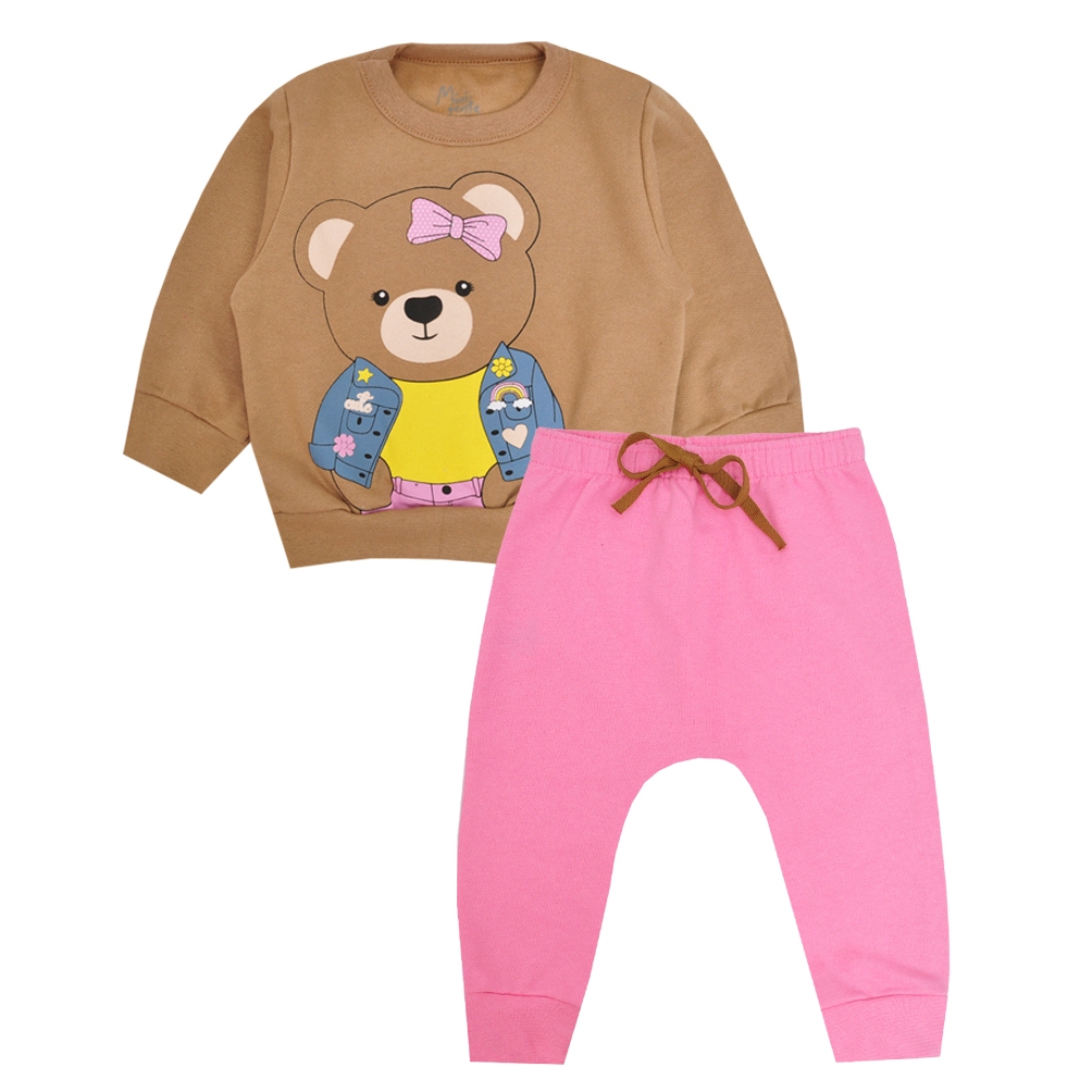 Conjunto Moletom Menina Modelo com estampa frontal, detalhes com pelo no capuz. Tamanho P - 0-3 meses M - 3-6 meses G - 6-9 meses 1 - 9-12 meses 2 - 12-24meses 3 - 24-36 meses Blusa (em cm) Tamanho Largura Comprimento P 27 30 M 28 32 G 29 34 1 30 36 2 31 39 3 33 43 Calça (em cm) Tamanho Largura Comprimento P 20 35 M 21 37 G 22 39 1 23 45 2 24 49 3 25 53