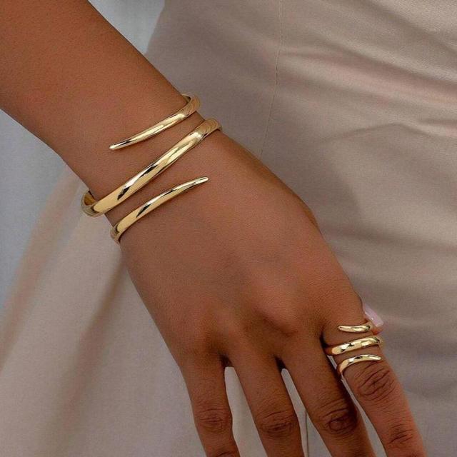 Conjunto mulheres Anel e Pulseira Minimalista com Design Curvo Exclusivo de Linha e Gota d''Água