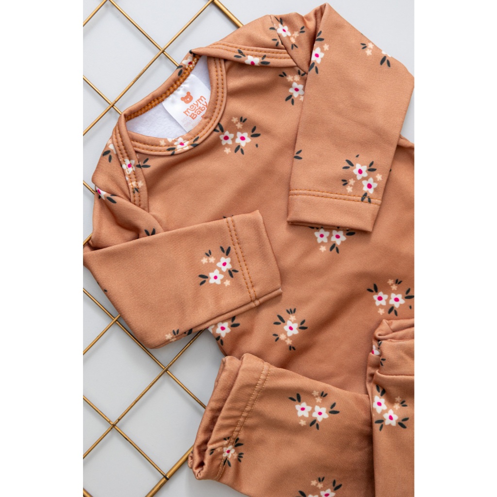 Conjunto Pagão Bebê Térmico Floral Marrom Confortável
