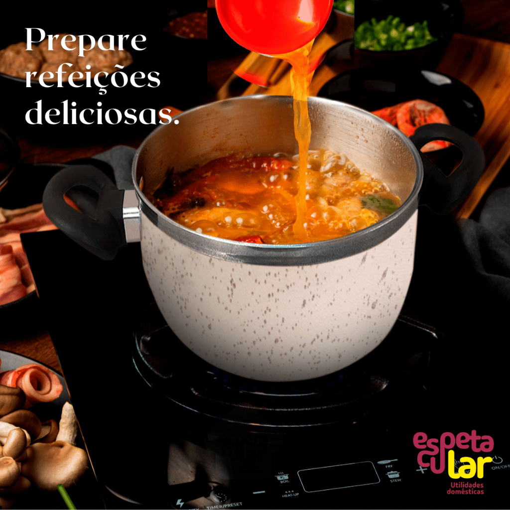 ✨ Transforme suas receitas com os utensílios certos. Na EspetacuLar, cozinhar é sempre um espetáculo! ❤️ 🚚📦🕒PRONTA ENTREGA - ENVIAMOS PARA TODO BRASIL - COM NOTA FISCAL - SEU PRODUTO BEM EMBALADO NA CAIXA COM PLÁSTICO BOLHA. >>> DESCRIÇÃO DO PRODUTO: ----------------------------------------- Conjunto Panelas Vanilla Caçarola + Leiteira + Frigideira + Pressão Antiaderente 6 peças Este conjunto completo de 6 panelas antiaderentes irá atender a todas as suas necessidades na cozinha! Ideal para preparar as mais diversas receitas com praticidade e fácil limpeza. Ao adquirir este produto, você irá suprir as necessidades básicas de utensílios para a sua cozinha por um excelente custo-benefício. Benefícios: ✅ Cozinhe de forma rápida e saudável, com menos óleo e sem os alimentos grudarem. ✅ Limpeza fácil e rápida, economizando seu tempo. ✅ Design moderno e versátil, combinando com qualquer cozinha. ✅ Alças ergonômicas que garantem segurança e conforto ao manusear. ✅ Material durável e resistente, feito para durar por muitos anos. Usabilidade: ✅ Perfeito para fogão á gás. As tampas de vidro temperado permitem acompanhar o cozimento sem precisar abrir a panela. ✅ Possui revestimento antiaderente interno e externo, o que evita que os alimentos grudem até mesmo por fora da panela tornando a limpeza muito mais fácil e preservando a durabilidade do produto. Características Técnicas: ✅ Revestimento antiaderente ✅ Alças ergonômicas ✅ Material: Alumínio durável e resistente ✅ Compatível com todos os tipos de fogão (exceto indução) ✅ Acompanha utensílios de silicone ✅ Cores disponíveis: Vanilla ✅ Compatibilidade: fogão á gás. >>> CONTEÚDO: ----------------------------------------- Quantidade de peças: 6 peças 👉 Caldeirãozinho 16 cm | 1,5 Litros 👉 Caçarola 18 cm | 1,7 Litros 👉 Caçarola 20 cm | 2,3 Litros 👉 Fervedor 14 cm | Altura 9 cm 👉 Frigideira 22 cm 👉 Panela de Pressão 20 cm | Altura 21 cm | 4,5 Litros >>> INSTRUÇÕES DE USO: ----------------------------------------- ❌ Não pode ir ao forno ❌ Não vai ao micro-ondas ❌ Não utilizar em fogões de indução >>> PERGUNTAS FREQUENTES: ----------------------------------------- 📌 O conjunto acompanha tampas? Sim, as panelas possuem tampas de vidro temperado com exceção da frigideira e o fervedor. 📌 As panelas são antiaderentes? Sim, o conjunto possui revestimento antiaderente por dentro e por fora, livre de PFOA e outras substâncias tóxicas, sendo seguro para sua saúde. 📌 Qual o tamanho das panelas? As medidas exatas estão disponíveis nas especificações do produto. 📌 O conjunto de panelas pode ser utilizado em lava-louças? Sim, o conjunto é lavável em lava-louças. 📌 O conjunto de panelas é compatível com todos os tipos de fogão? Não, o conjunto é compatível com fogões a gás e não pode ser utilizado no forno, indução ou micro-ondas. 📌 Quais as garantias do meu produto? Todos os nossos produtos possuem garantia contra defeito de fabricação. 📌 O que tenho que fazer antes de comprar? Tenha certeza se é o produto que procura. Antes de clicar em comprar, verifique os seus dados de cadastro, como CPF ou CNPJ e endereço para entrega. 📌 Posso devolver o meu produto? De acordo com o Código de defesa do consumidor, produto comprado na internet pode ser devolvido em até 7 dias e sem motivação. 📌 Quando são feitos os envios? Todos os nossos produtos são enviados em até 24h úteis. 99% é enviado antes. Para isso mantenha seus dados atualizados. 📌 Posso comprar vários itens diferentes? Sim. Se você se interessar por mais de um produto da nossa loja, basta colocá-los no carrinho e depois efetuar o pagamento de todos ao mesmo tempo. Desse jeito você pode até ganhar frete grátis ou um desconto considerável. INFORMAÇÕES ADICIONAIS: ----------------------------------------- 🚚 Disponibilidade: Pronta entrega 🕒 Entrega: Envio Imediato 📦 Embalagem: Seu produto bem embalado na caixa com plástico bolha. ✨ Não perca essa oportunidade de ter uma cozinha completa e funcional! 🥘 Estamos a disposição para esclarecer qualquer dúvida, Aguardamos seu pedido!
