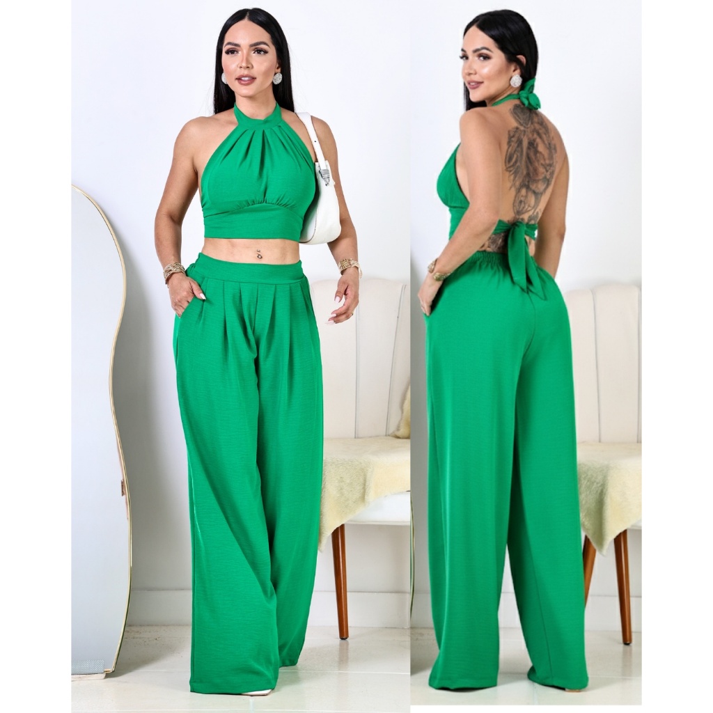 Conjunto Pantalona Feminina Cropped Duna Confortável Estilo só