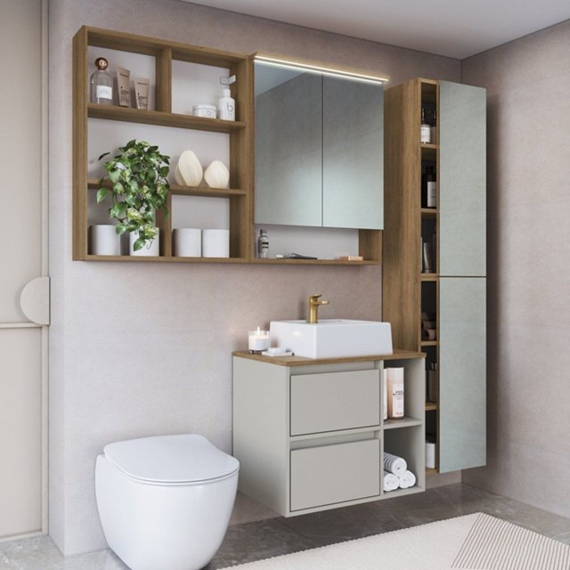 | Armário Conjunto de Banheiro com Gabinete, Cuba e Espelheira com um... | R$ 641,98 | 13% | 4.6/5 | 8 |