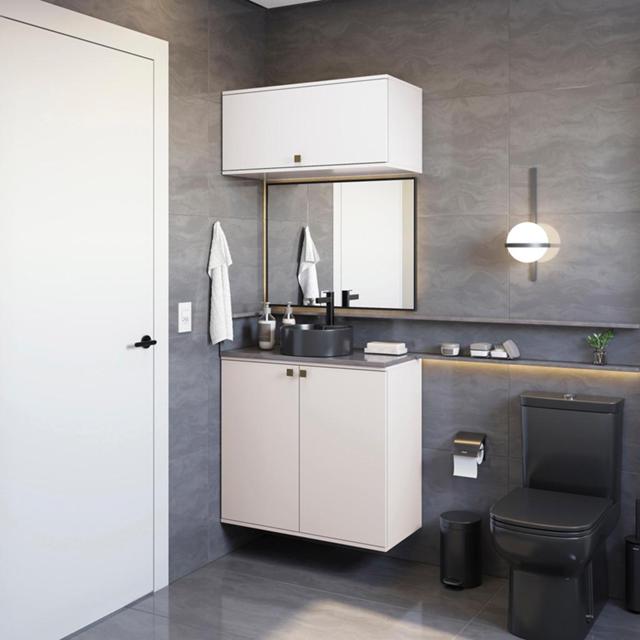 Para espaços menores e otimizados, aposte na beleza e qualidade do 100% MDF da Celeste da Kappesberg. A escolha ideal para quem possui um banheiro pequeno e não abre mão de estilo e praticidade, o combo CB1285 será o complemento ideal para ter na sua casa. Com dois módulos de aéreo, você terá o espaço necessário para armazenar toalhas, cestos e demais itens do seu dia a dia. Fácil de adaptar, com até sete camadas de pintura, sua cor branco brilho é perfeita para todos os ambientes, garantindo sofisticação, praticidade na limpeza e luminosidade, deixando seu banheiro completo. As portas contam com amortecimento, garantindo um fechamento suave, sem ruído e mais durabilidade, e para completar a beleza dos módulos, os puxadores, metálicos na cor dourada, transformam seu projeto com estilo. Aposte na Celeste e monte seu banheiro com toda a beleza e praticidade que a Kappesberg oferece. Informações Importantes: As imagens são meramente ilustrativas, não acompanha acessórios; Pode haver variação de cor de acordo com a calibragem da tela onde o produto está sendo visualizado; Tampo não incluso, é vendido separadamente; Todos nossos móveis são entregues desmontados; A montagem é sempre por conta do cliente (orientamos a contratação de um profissional qualificado, o manual de montagem acompanha o produto); A altura do combo varia conforme a posição fixada na parede; O vídeo do produto pode ser genérico, então atente-se às imagens do anúncio para optar pela cor/modelo. Compõe o combo: 1x Armário Aéreo Celeste Kappesberg 100% MDF 2 Portas 80cm; 1x Armário Aéreo Celeste Kappesberg 100% MDF 1 Porta Basculante 80cm. *Obs.: Cuba de pia/Tampo de 120cm não acompanham o banheiro.