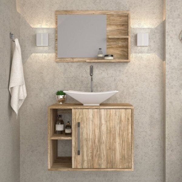 Conjunto para Banheiro Gabinete com Cuba Folha L38 e Espelheira Laura 600 Yescasa Carvalho