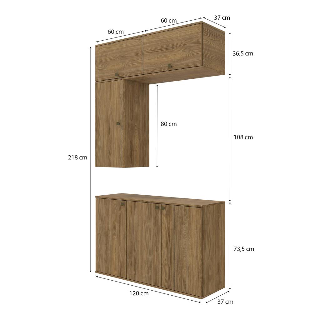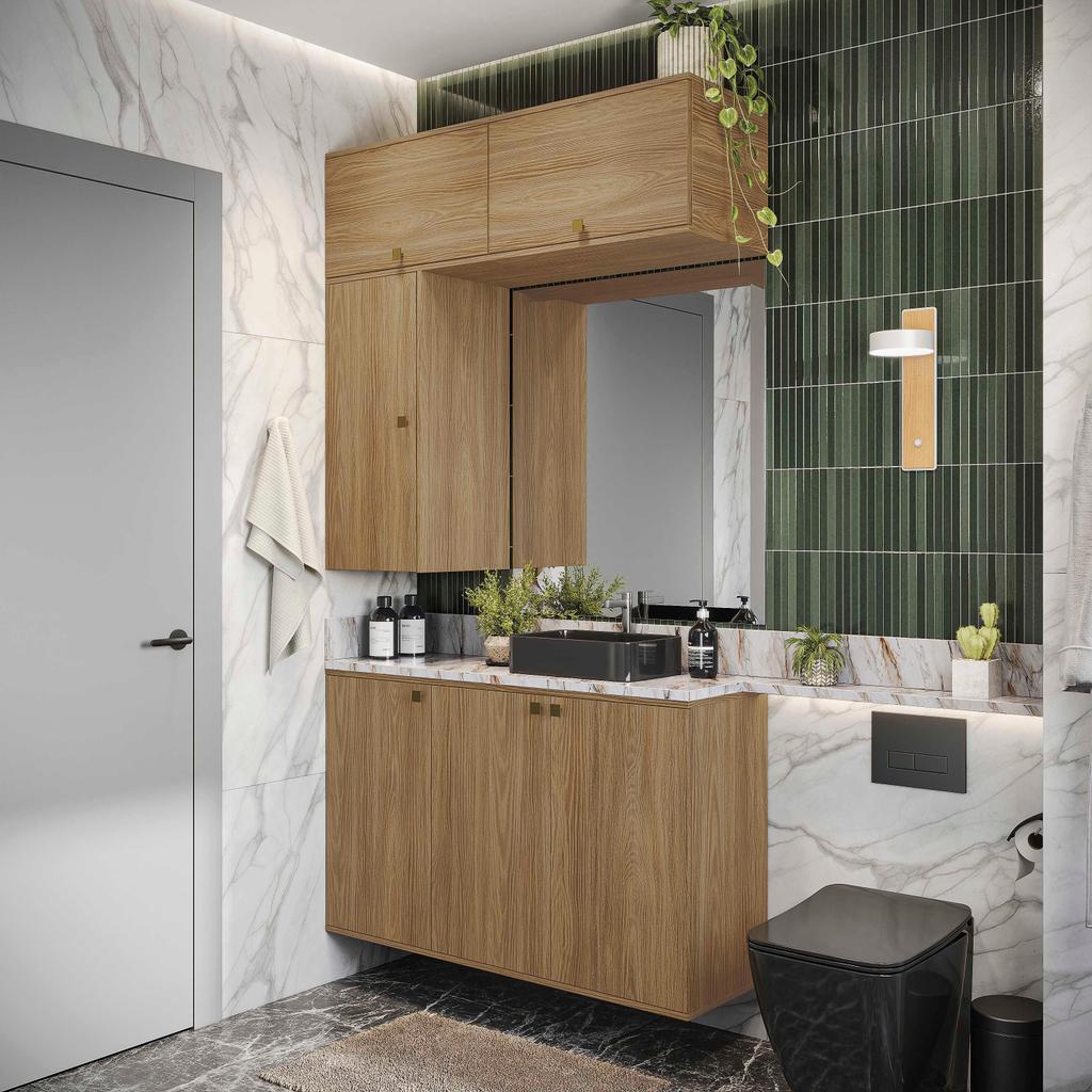 Versátil e compacto, garantindo beleza aos ambientes e com toda a qualidade do 100% MDF da Celeste da Kappesberg. Para manter seu banheiro sempre organizado, aposte no combo CB1283, que se encaixa perfeitamente em todos os espaços, garantindo praticidade no dia a dia. Formado apenas por aéreos, com três peças, ele é fácil de adaptar, e com ótimas divisões, é perfeito para organizar toalhas, cestos e demais itens, mantendo tudo no lugar. E com até sete camadas de pintura, sua cor nogueira, com acabamento touch, é perfeita para todos os ambientes, garantindo a sensação de conforto e aconchego, além de praticidade na limpeza, e remetendo aos tons da naturaza, deixará seu banheiro completo. As portas contam com amortecimento, garantindo um fechamento suave, sem ruído e mais durabilidade, e para completar a beleza dos módulos, os puxadores, metálicos na cor dourada e com formato quadrado, transformando seu projeto com estilo. Aposte na Celeste e monte seu banheiro com toda a beleza e praticidade que a Kappesberg oferece. Informações Importantes: As imagens são meramente ilustrativas, não acompanha acessórios; Pode haver variação de cor de acordo com a calibragem da tela onde o produto está sendo visualizado; Tampo não incluso, é vendido separadamente; Todos nossos móveis são entregues desmontados; A montagem é sempre por conta do cliente (orientamos a contratação de um profissional qualificado, o manual de montagem acompanha o produto); A altura do combo varia conforme a posição fixada na parede; O vídeo do produto pode ser genérico, então atente-se às imagens do anúncio para optar pela cor/modelo. Compõe o combo: 1x Armário Aéreo Celeste Kappesberg 100% MDF 3 Portas 120cm; 2x Armário Aéreo Celeste Kappesberg 100% MDF 1 Porta Basculante 60cm; 1x Armário Aéreo Celeste Kappesberg 100% MDF 1 Porta Basculante 80cm. *Obs.: Cuba de pia/Tampo de 120cm não acompanham o banheiro.