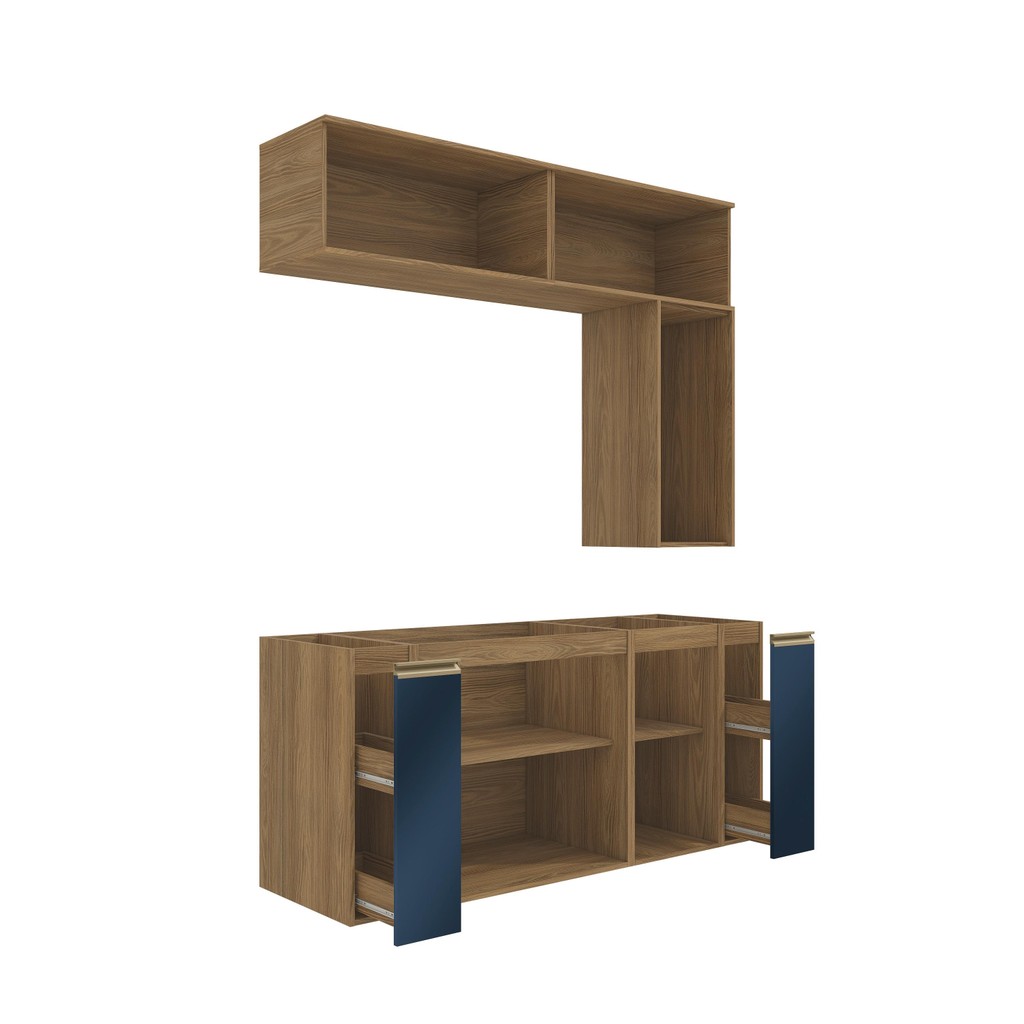 O máximo de beleza e espaço para seu banheiro aliado a qualidade do 100% MDF, só com a Celeste da Kappesberg. Ideal para quem procura por muito espaço, ele encaixa perfeitamente em ambientes maiores, garantindo organização e praticidade no seu dia a dia. E com até sete camadas de pintura, a caixaria é na cor nogueira com acabamento touch, enquanto as frentes são em azul profundo, com acabamento fosco, a composição ideal para quem não abre mão de sofisticação e aconchego, deixando seu banheiro com um design único. Com sete módulos, o combo CB1281 conta com divisórias perfeitas para um banheiro sempre organizado e funcional. Os módulos de nicho possuem corrediças telescópicas, que facilitam o armazenamento de itens menores e acessórios, além de mais praticidade no manuseio. Enquanto as portas, com amortecimento, garantem um fechamento suave, sem ruídos e mais durabilidade, e com diversas prateleiras, será fácil organizar toalhas, cestos e demais itens na parte interna. A beleza dos módulos se completa com os puxadores, metálicos na cor dourada e com modelos diferentes nos balcões e aéreos, transformando seu projeto com estilo. Aposte na Celeste e monte seu banheiro com toda a beleza e praticidade que a Kappesberg oferece. Informações Importantes: As imagens são meramente ilustrativas, não acompanha acessórios; Pode haver variação de cor de acordo com a calibragem da tela onde o produto está sendo visualizado; Tampo não incluso, é vendido separadamente; Todos nossos móveis são entregues desmontados; A montagem é sempre por conta do cliente (orientamos a contratação de um profissional qualificado, o manual de montagem acompanha o produto); O vídeo do produto pode ser genérico, então atente-se às imagens do anúncio para optar pela cor/modelo. Compõe o combo: 2x Nicho Porta Condimentos Celeste Kappesberg 100% MDF 20cm; 1x Balcão Celeste Kappesberg 100% MDF 1 Porta 40cm; 1x Balcão Celeste Kappesberg 100% MDF 2 Portas 80cm; 3x Armário Aéreo Celeste Kappesberg 100% MDF 1 Porta Basculante 80cm. *Obs.: Cuba de pia/Tampo de 120cm não acompanham o banheiro.