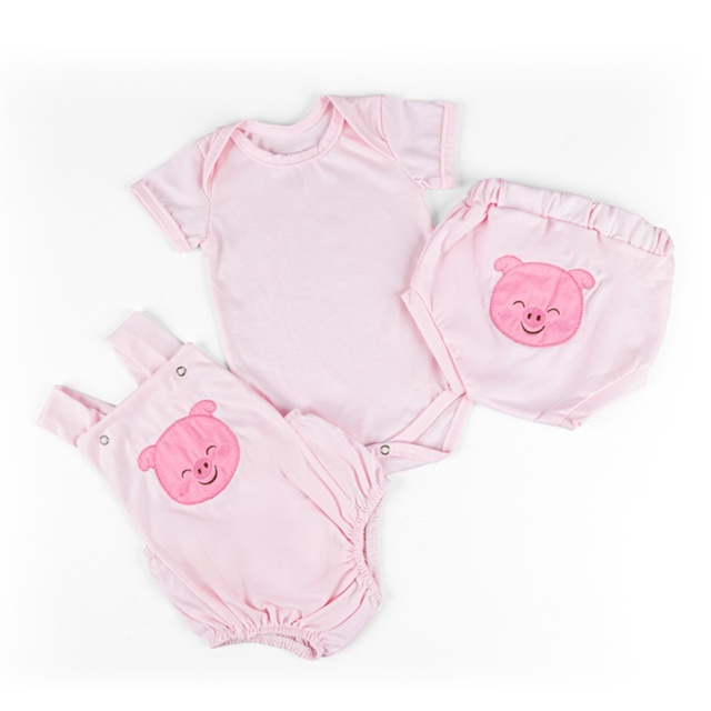 Conjunto Para Bebê de Bichinhos Porquinho Rosa 3 Peças Body Menino e Menina Bordado Roupas de Bebê