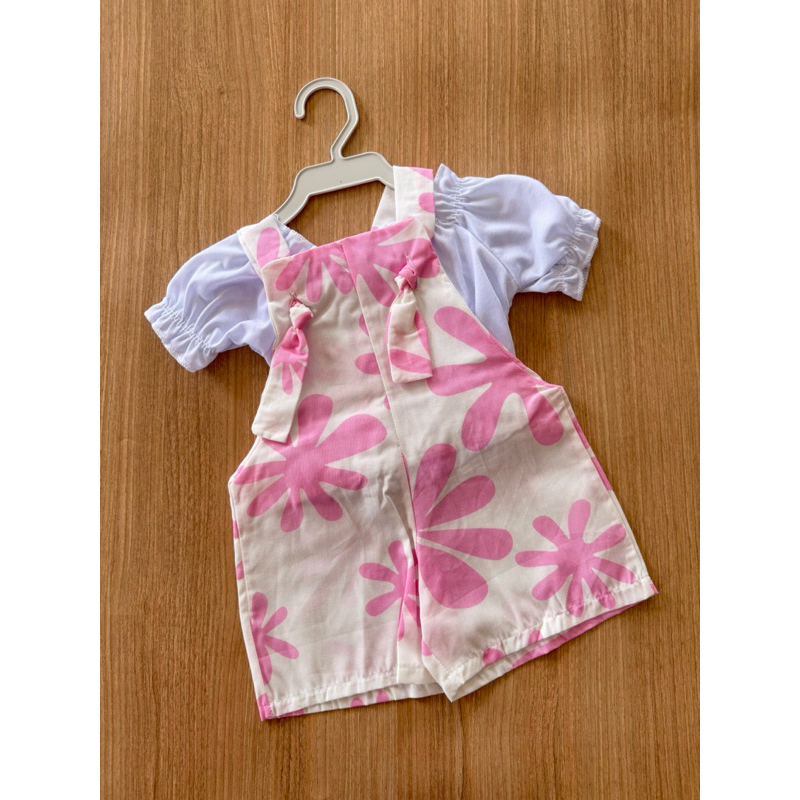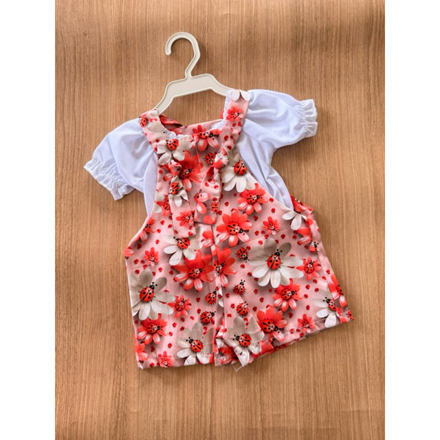 Jardineira com Camisa (cropped) Dois modelos Modelo de shortinho com amarração nas alças Modelo de sainha com botões Composição: 100% algodão Tamanho: 6 a 12 meses Medidas: Camisa 21cm de comprimento - 26cm de largura (contém elástico em todos os lados) Jardineira 34cm de comprimento (frente) - 30cm de largura Caso haja alguma dúvida, entrar em contato, estamos aqui para melhor te atender. Enviamos de imediato (Dependendo da hora conseguimos enviar no mesmo dia, caso não dê será enviado no dia útil seguinte) Enviamos todos os dias úteis Finais de semana não há envios, caso você peça na sexta, sábado ou domingo o pedido será enviado no dia útil seguinte.