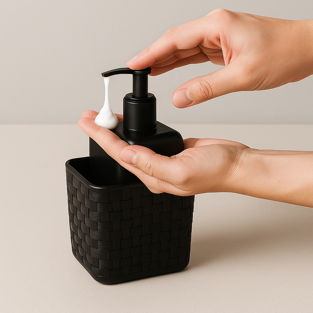 Conjunto peças para Cozinha Lixeira + Rodo + Porta Detergente com Base Esponja Rattan 5L preto