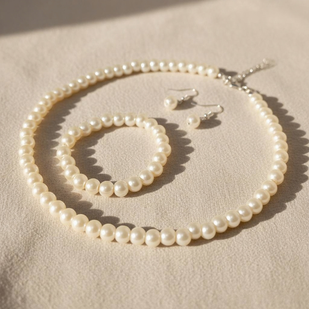 Conjunto Pérolas Feminino Colar Pulseira e Brincos Estilo Anos 2000 Retrô Vintage Elegante Moda Y2K
