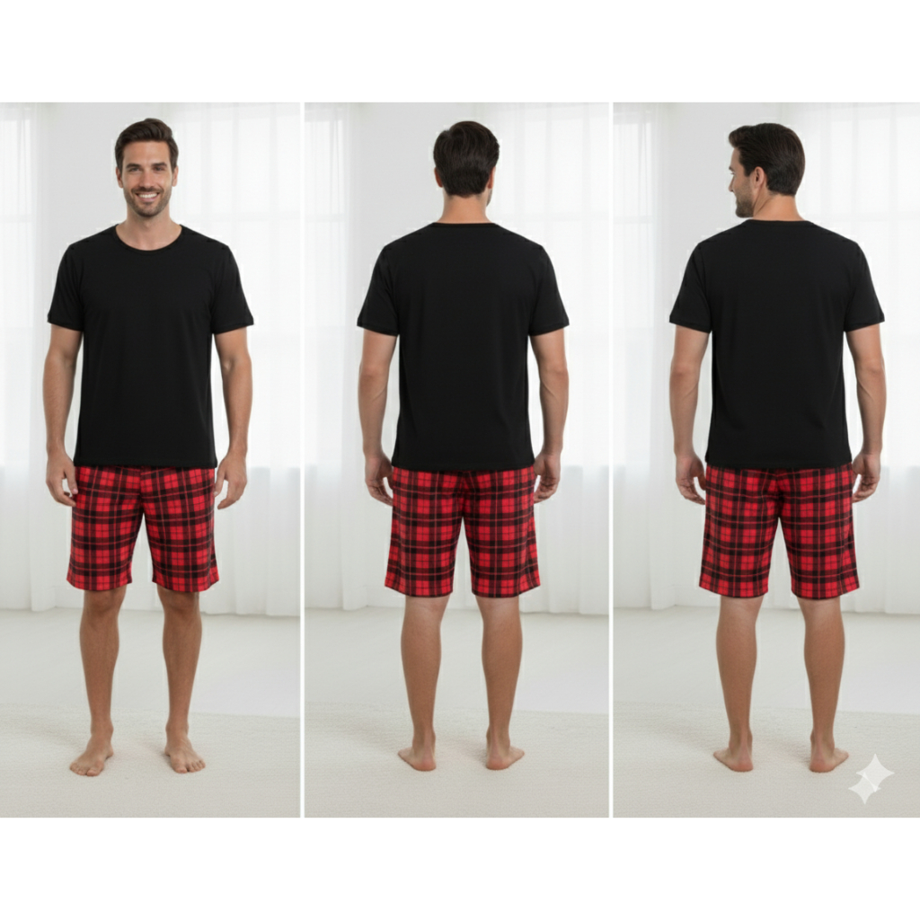 Conjunto Pijama Adulto Masculino Curto Básico Xadrez Liso Verão