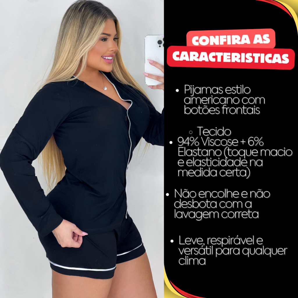Conjunto Pijama americano Feminino blusa longo shorts curto