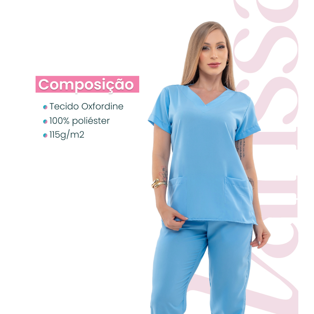 Conjunto Pijama Scrub Oxfordine Uniforme Enfermagem Basico Azul Claro