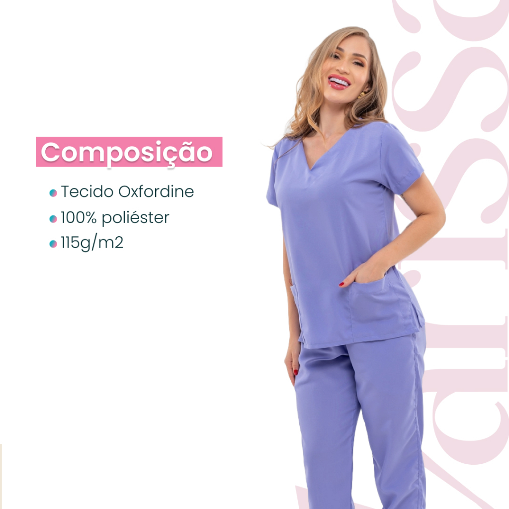 Conjunto Pijama Scrub Oxfordine Uniforme Enfermagem Basico Lilás Roupa Privativa