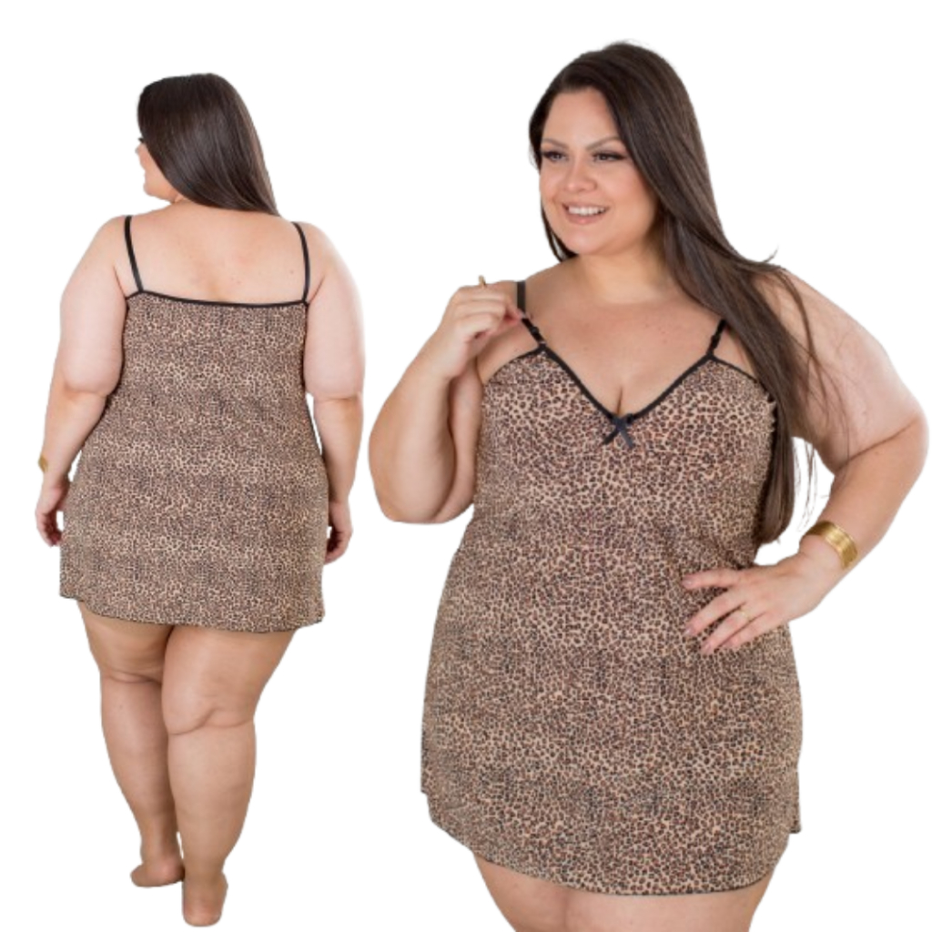 Conjunto Plus Size Baby Doll e Camisola Plus Size Feminino Animal Print Pijama