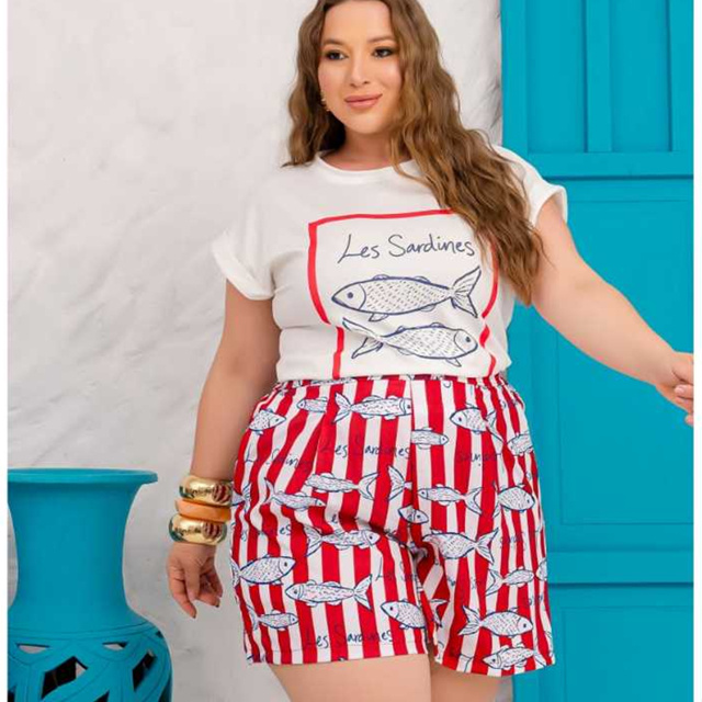 Conjunto Plus Size Blusa Cropped e Short Verão Moda Plus Size Conjuntinho Feminino Curve
