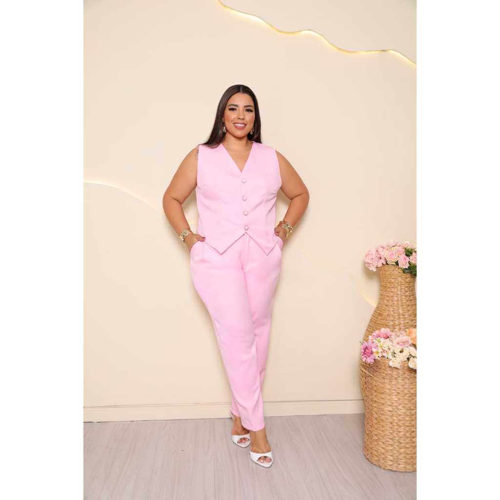 Conjunto Plus Size Feminino Calça E Colete Em Alfaiataria Elegante