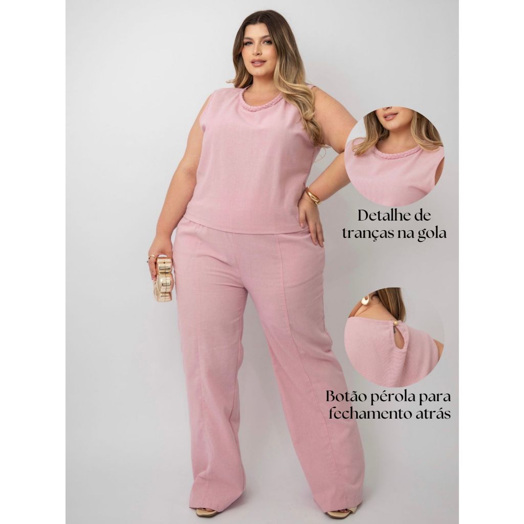 Conjunto Plus Size Feminino Linho Regata e Calça Pantalona