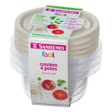 | CONJUNTO POTES SANREMO 4UN REDONDO 230ML COR CAPUCCINO este produto | R$ 18,99 | — | 4.9/5 | 7 |