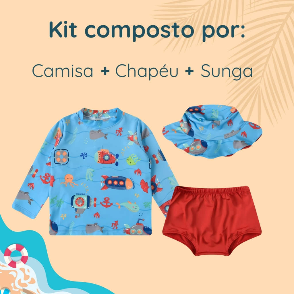 Conjunto Praia Bebê Com Proteção Uv Menino 3 Peças