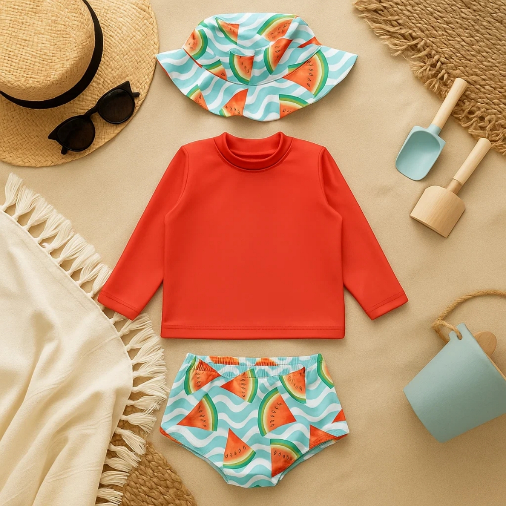 Conjunto Praia Bebê Proteção Uv 50+ Com Forro Menina 3 Peças