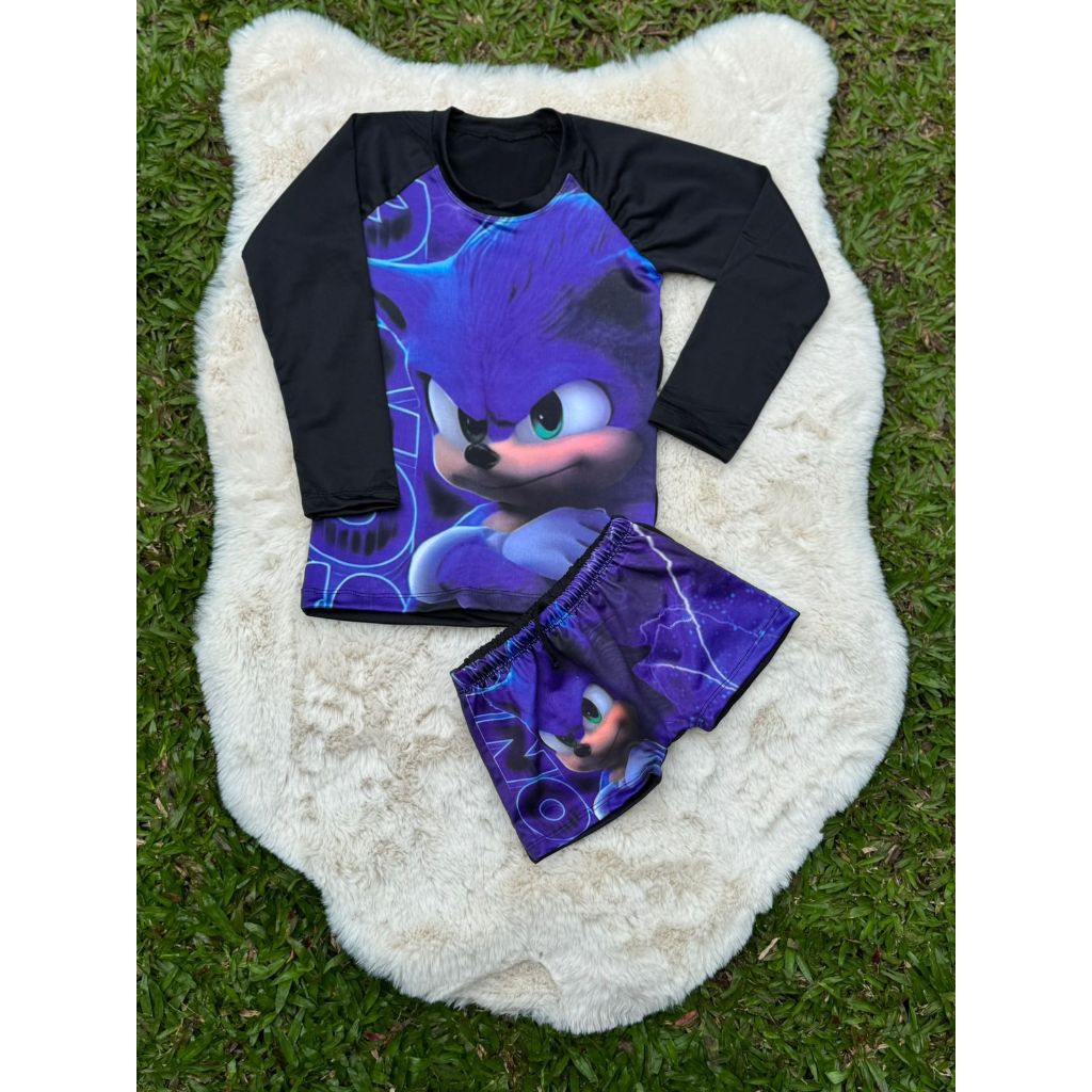 Conjunto Praia Infantil UV Menino Personagens Blusa UV Manga Longa + Sunga