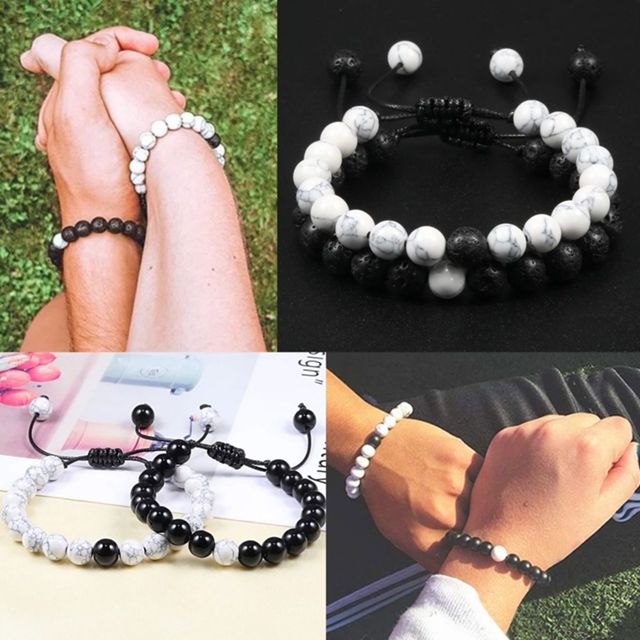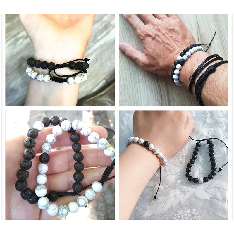 Conjunto Pulseiras Yin Yang Unissex Ajustáveis Pedras Naturais Miçangas Bracelete Masc Fem para Casal Amigos Namorados