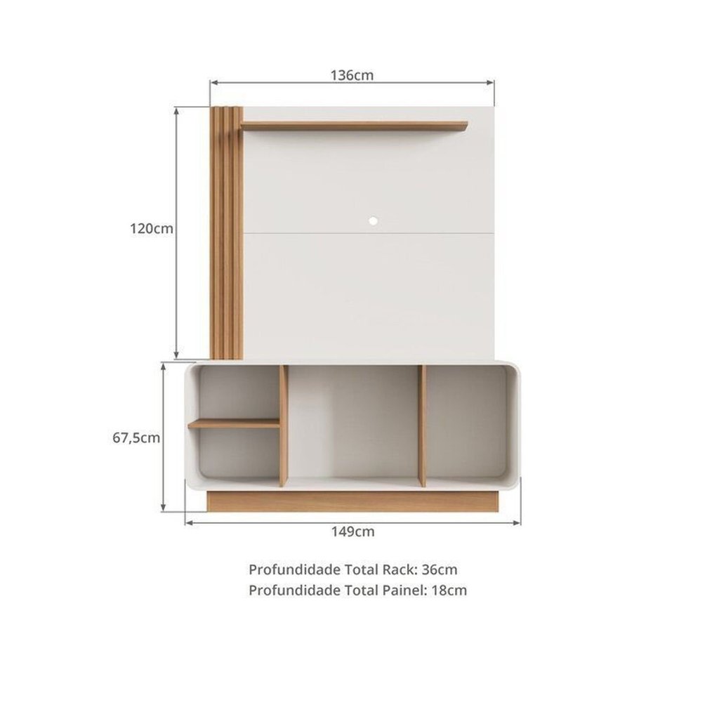 Conjunto Rack com Painel para TV 55 Polegadas Ripado Alabama Texas Freijó Off White