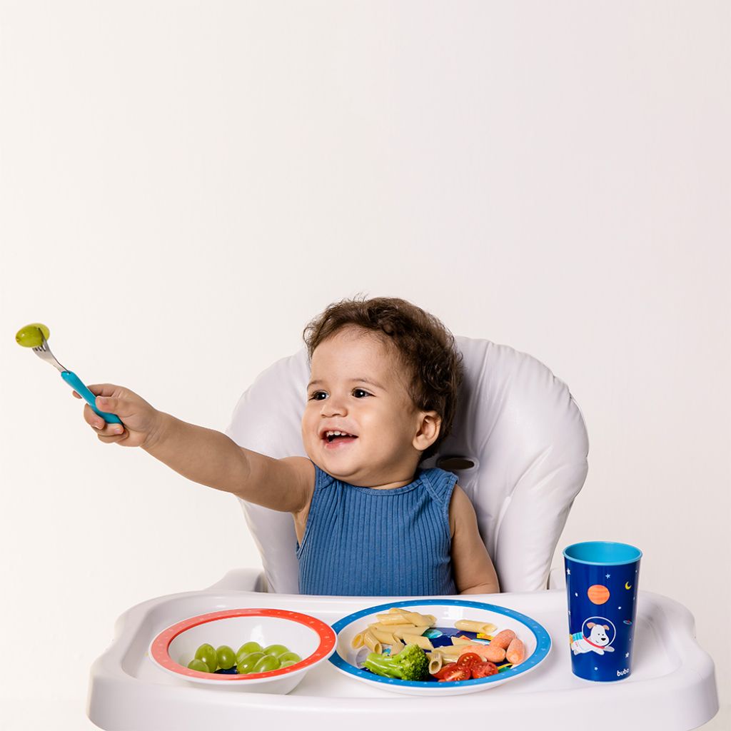 Conjunto Refeição Infantil Aventuras Astronauta Prato Bowl Copo E Talheres Buba