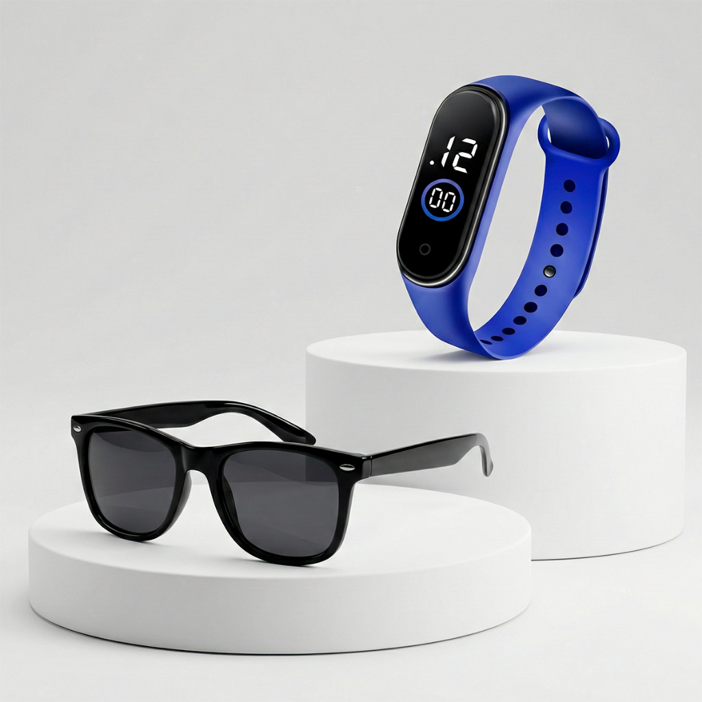 | Conjunto relógio LED criança e óculos de sol masculino infantil menino este produto | R$ 28,00 | 44% | 4.8/5 | 61 |