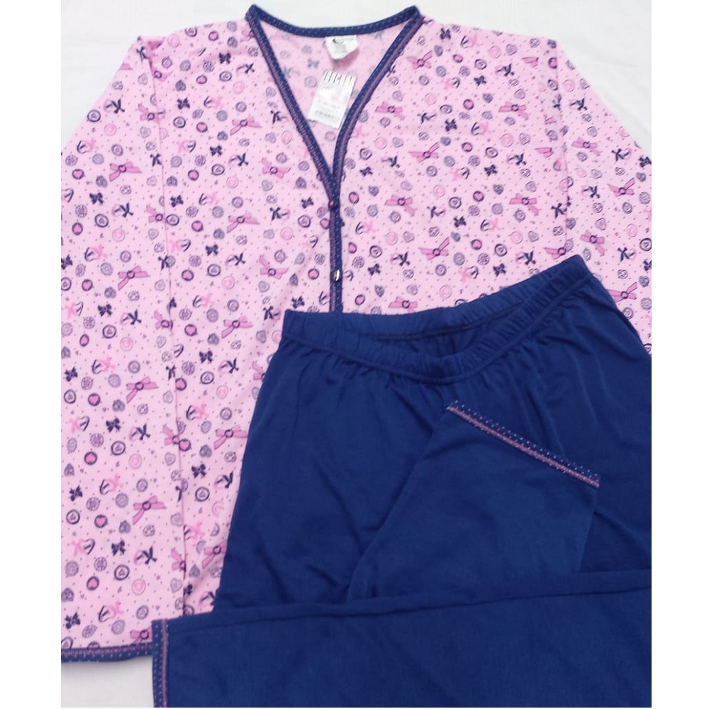 Conjunto Roupa De Dormir Estampado Calca De Frio E Blusa Manga Longo Com Botao